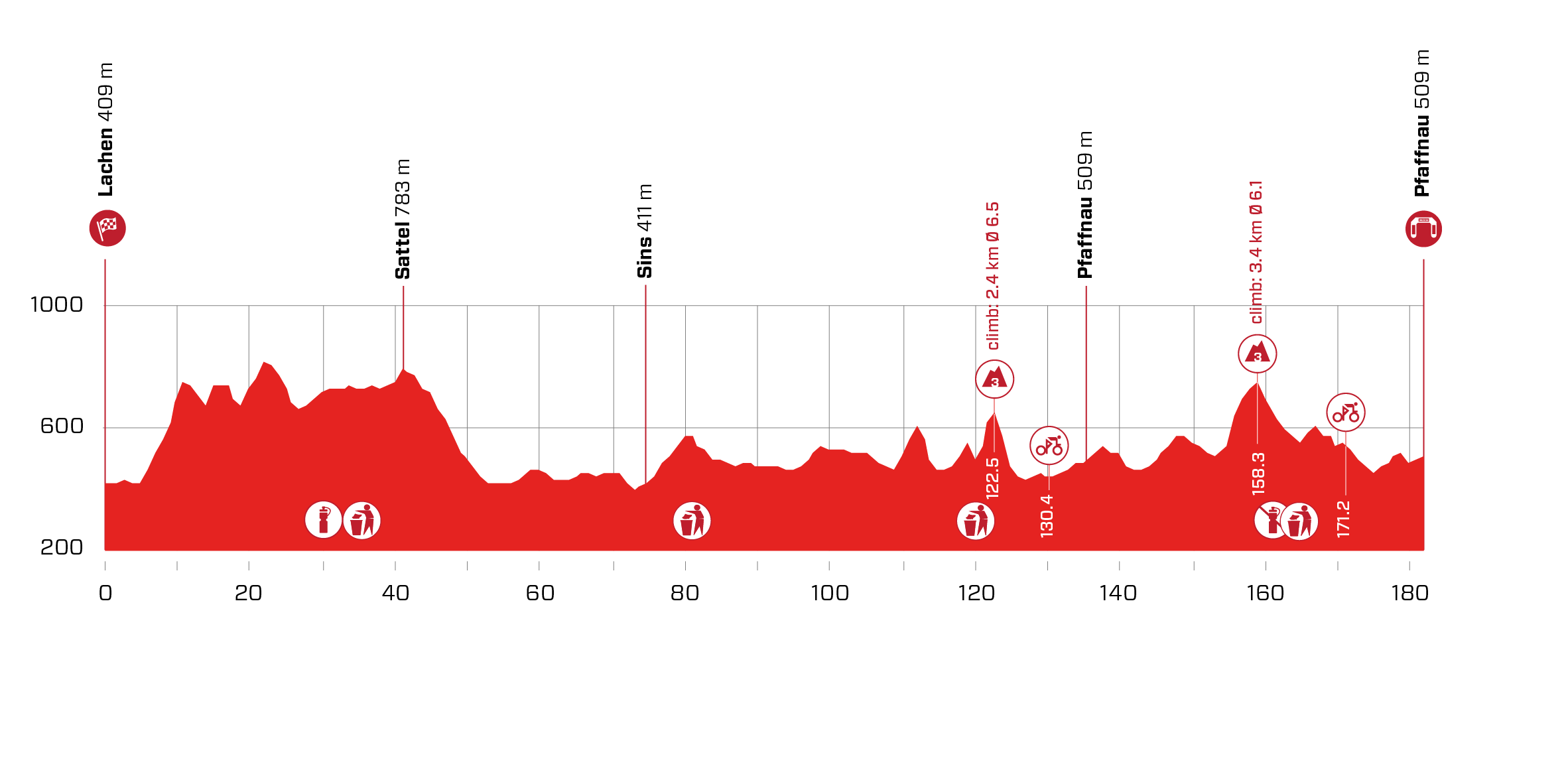 Il y aura ensuite une descente / faux plat descendant de 6 kilomètres jusqu’au village d’Altbüron où il y aura une courte côte d’1.2km à 6.2%. Les 15 kilomètres suivant seront un enchaînement de courtes descentes et de portions planes.